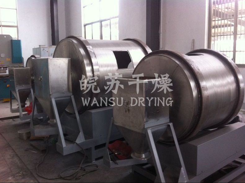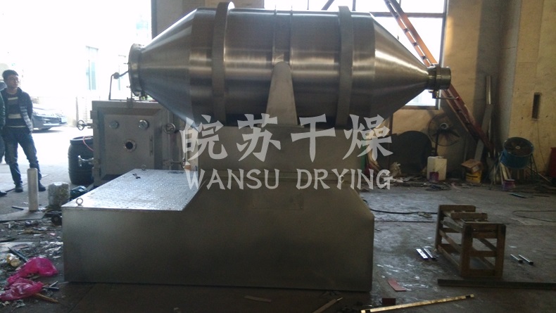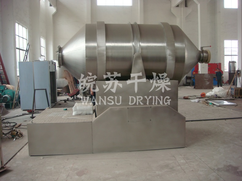 EYH二維混料機的轉(zhuǎn)筒可同時進行二個運動,一個為轉(zhuǎn)筒的轉(zhuǎn)動,另一個為轉(zhuǎn)筒隨擺動架的擺動。被混合物料在轉(zhuǎn)筒內(nèi)隨轉(zhuǎn)筒轉(zhuǎn)動、翻轉(zhuǎn)、混合的同時,又隨轉(zhuǎn)筒的擺動而發(fā)生左右來回的摻混運動,在這兩個運動的共同作用下,物料在短時間內(nèi)得到充分的混合。EYH二維混料機適合所有粉、粒狀物料的混合。